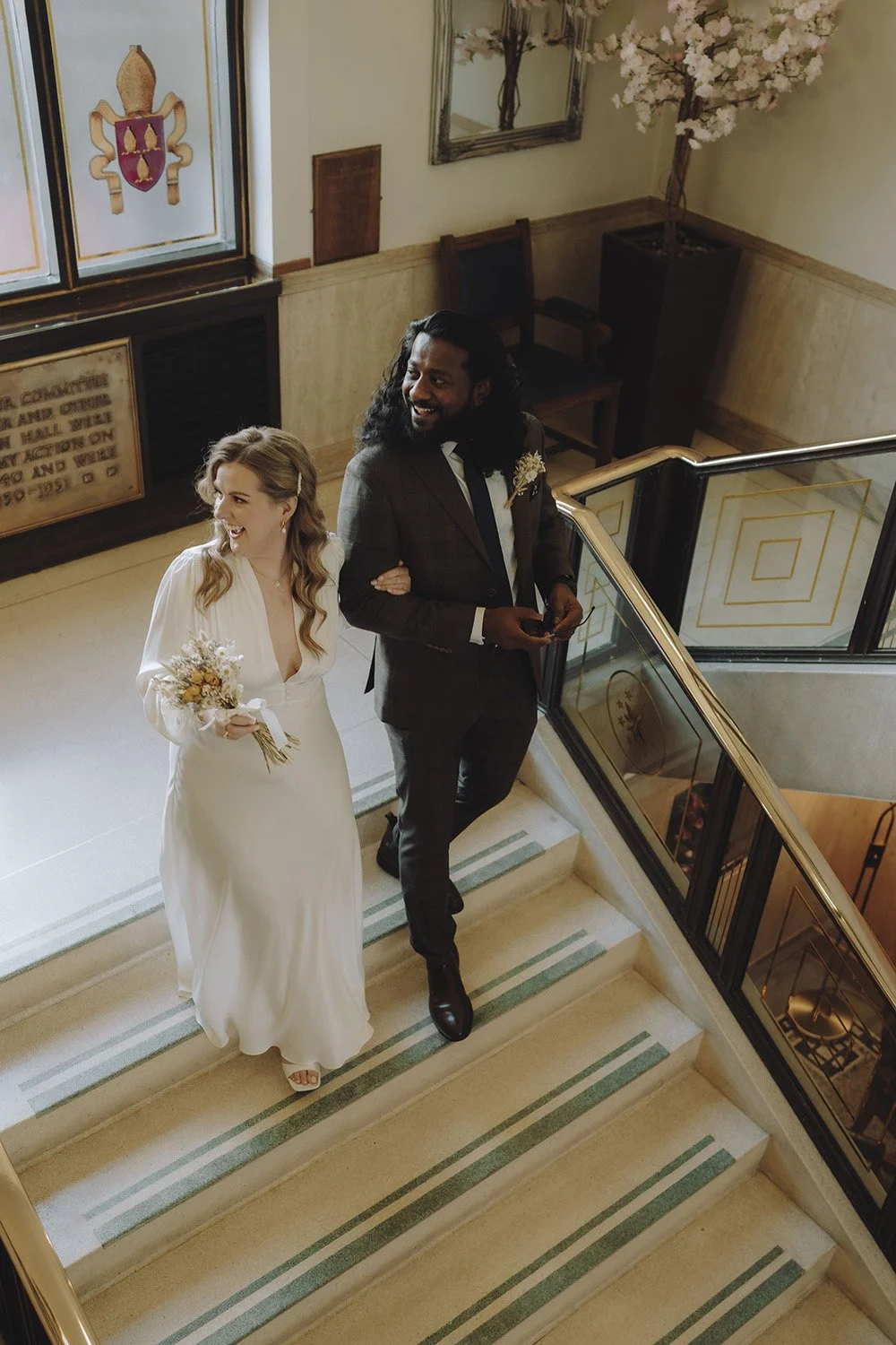 With its stunning location by the Bridgewater Canal, the Town Hall offers a wealth of picturesque spots for wedding photographs. From the elegant staircase at the main entrance to the bustling charm of Waterside Plaza, the couple had no shortage of backdrops for capturing unforgettable memories.